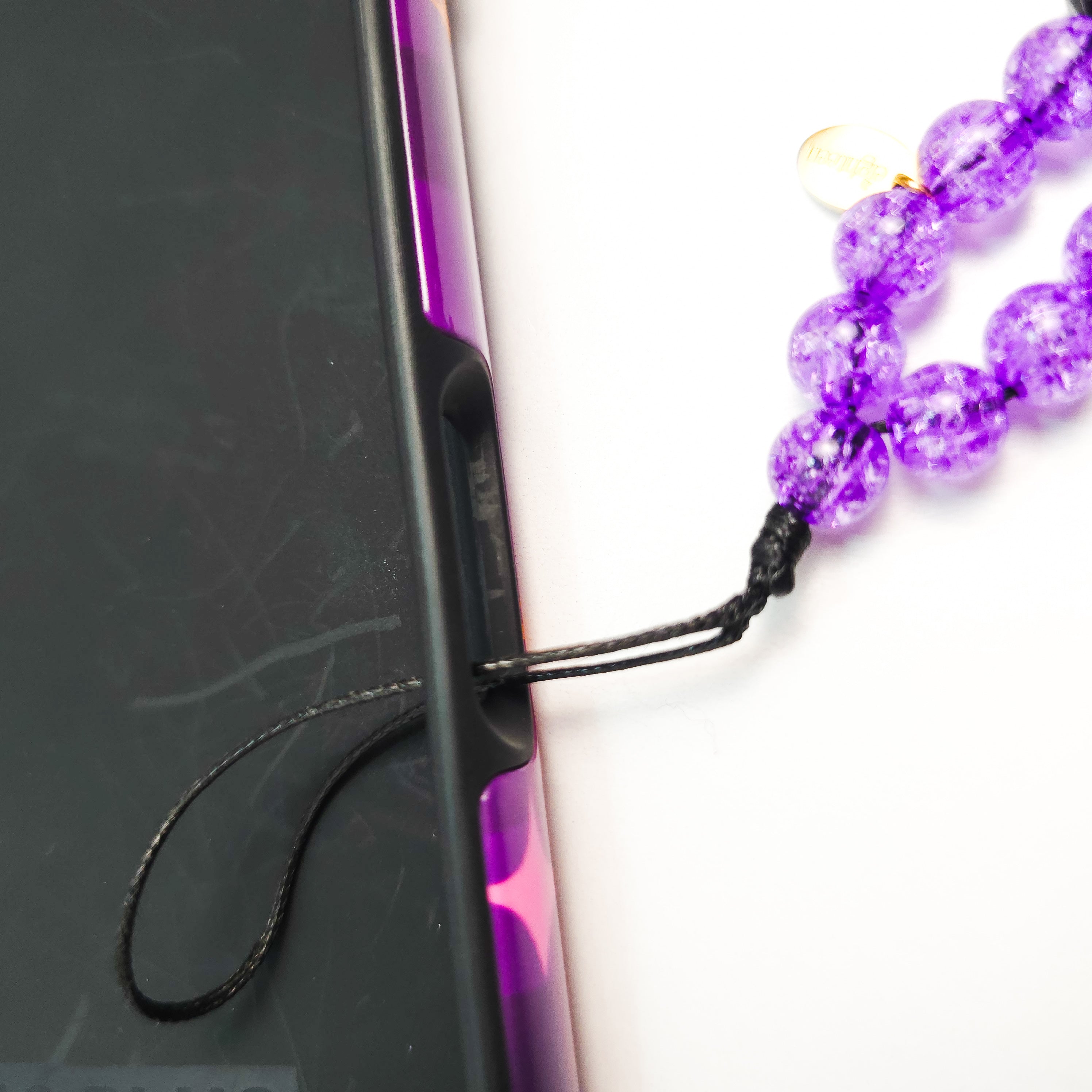 Slide the charm’s string loop through the opening.