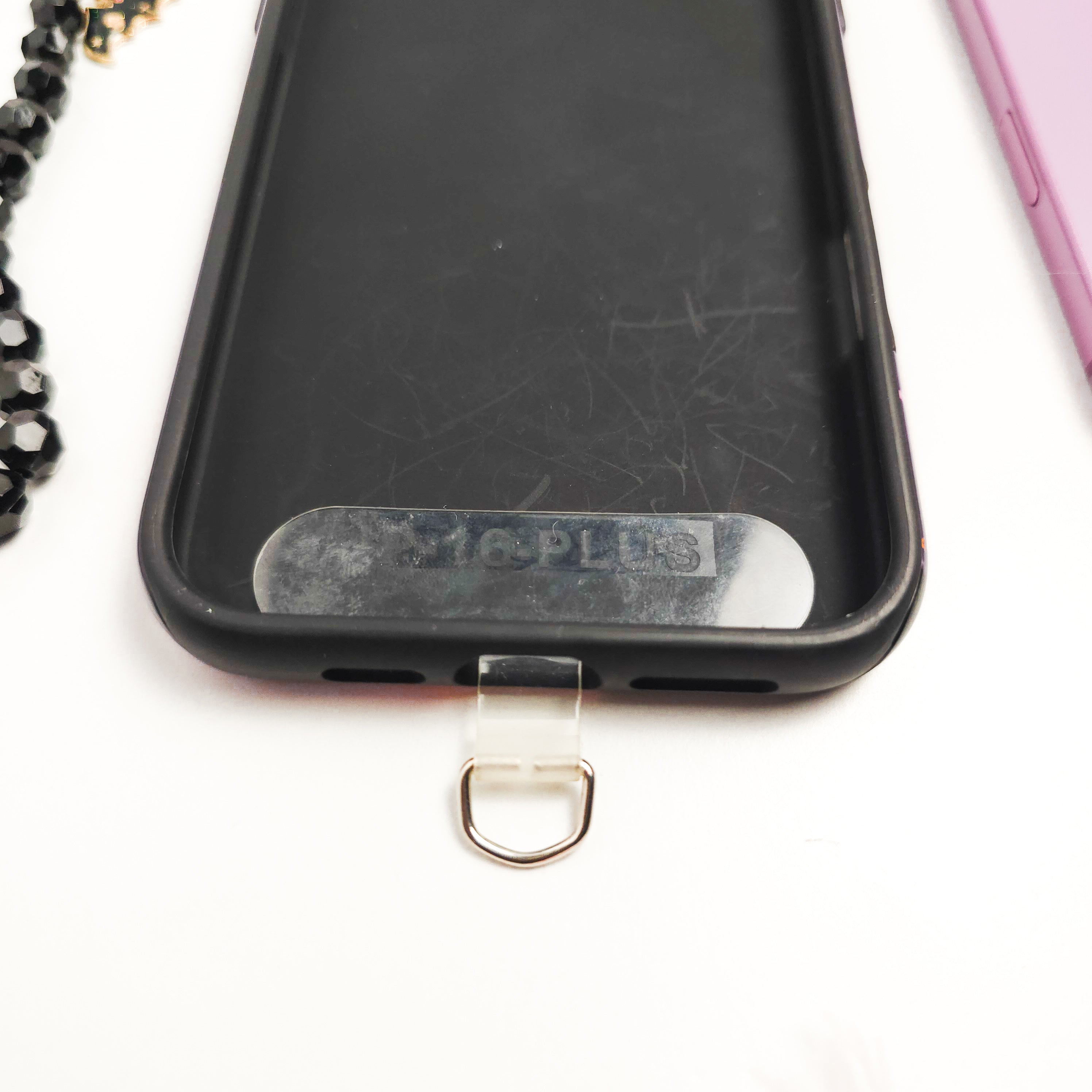 Snap your phone back in to secure it. Then, begin to thread your charm loop through the metal ring.