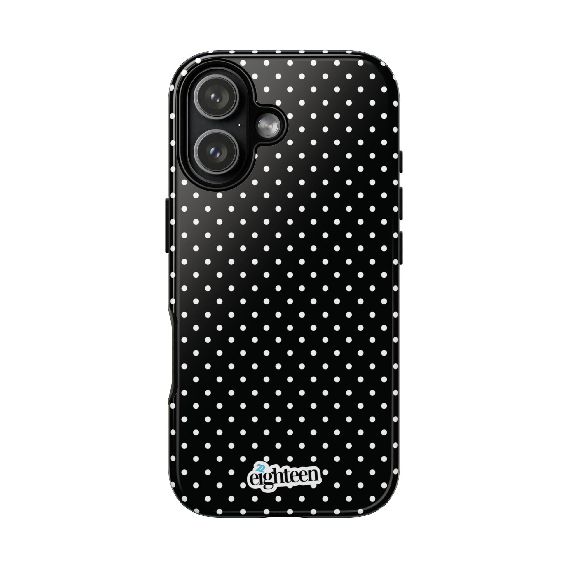 Timeless, tailored, and a little bit playful. Dotty dresses your phone in a refined black backdrop dusted with micro polka dots, a wardrobe-staple print that pairs as effortlessly with a trench and sneakers as it does your favorite mini tote.