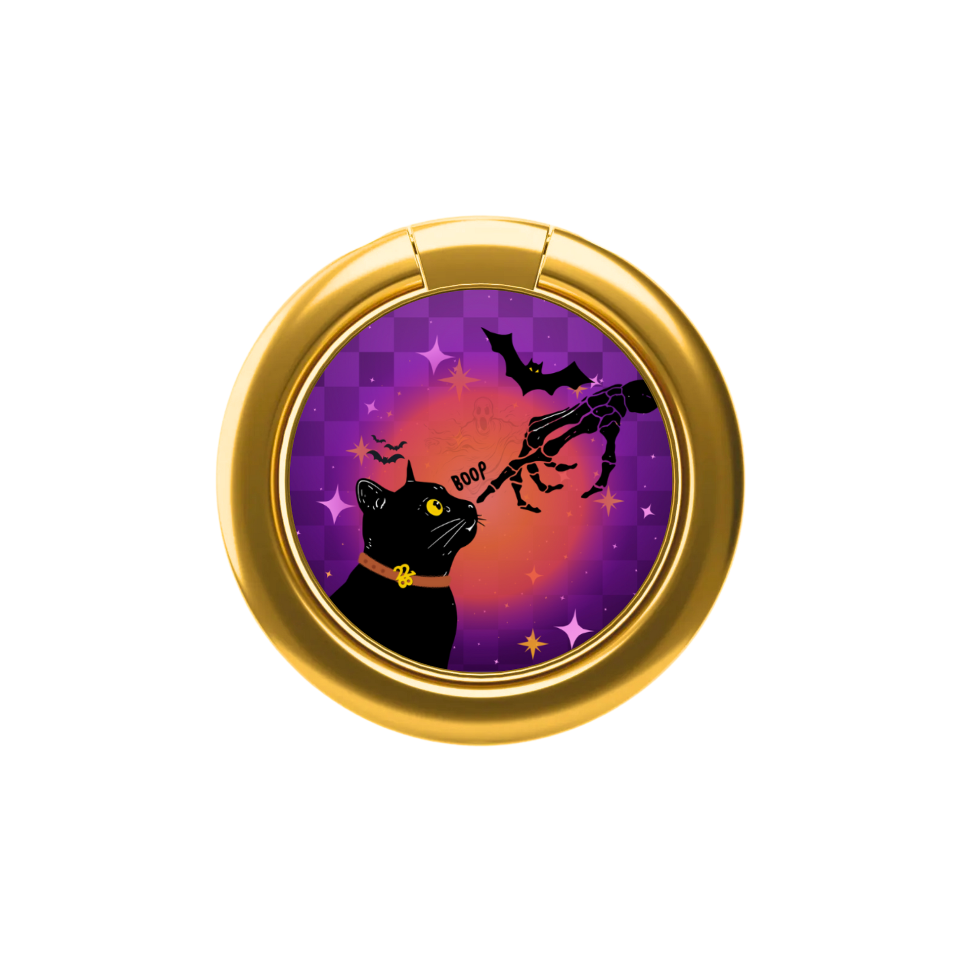 Spooky-cute and ready to boop your screen time. Our “Thrilla” Phone Ring serves black-cat energy with a neon twilight vibe—perfect for the lady on the go who loves Halloween year-round and coordinates accessories like it’s a sport. Adhere the ring to your fave case, flip the ring, and stream, text, or FaceTime hands-free while your phone sits pretty.